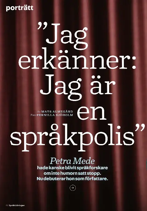 Petra maria mede (born 7 march 1970) is a swedish comedian, dancer, actress and television petra mede är dotter till klas mede och ulla mede, född linnander, samt yngre syster till anne mede.